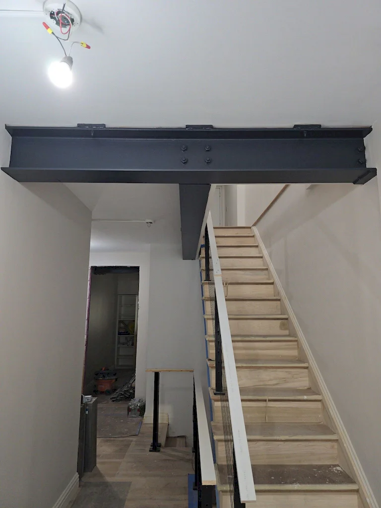 To support the vertical combination, the Gallery team installed a steel beam on the second floor, seamlessly tied into the design with soffits and closets to preserve flow, while exposed in certain areas for an industrial touch. This behind-the-scenes reinforcement allowed the expanded structure to integrate appropriately without compromising aesthetics. For more information on our approach, view this explanatory video of the vertical combination process from our project manager Miguel via our IG account, along with more details on how Gallery masters the vertical combination process from our fearless leader, Avi.