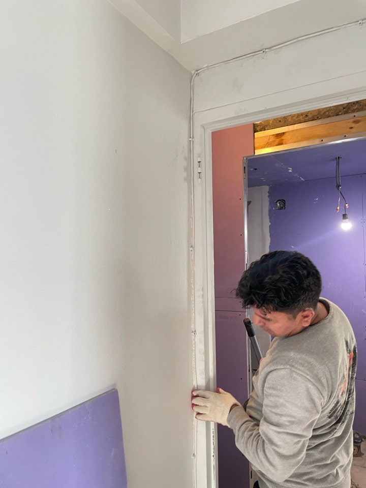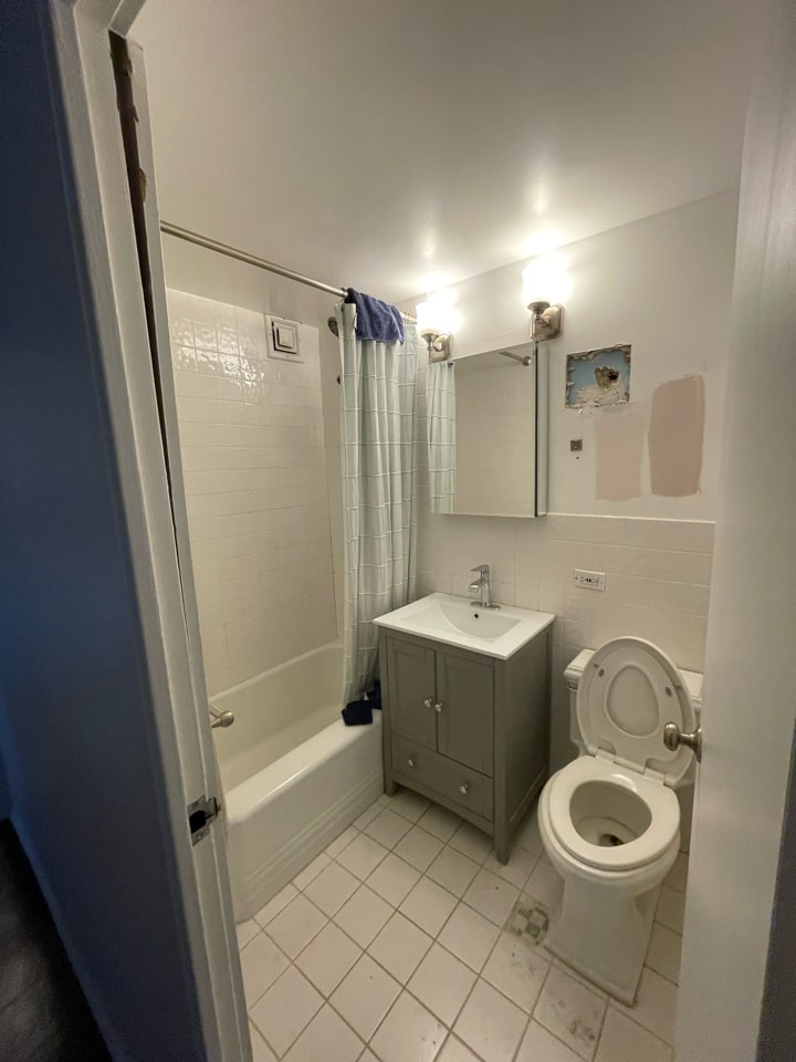 Because guest bathroom square footage was tight, we couldn’t have a door swinging inside, or out into the narrow main hallway. Given the way the walls are configured in the space, a pocket door was out of the question as well. The only option left was essentially a sliding door, but the client’s concern with a sliding door was the exposed hardware traditional sliding doors are equipped with. After weighing various custom options, we settled on a ghost door implementation leveraging Milcasa’s magic door mounting system. The custom door has the same glide as a traditional sliding option, but the hardware on the implementation is 100% hidden. Beyond the ghost door, all of the plumbing in the bathroom was updated with fixtures from Restoration Hardware for a refined look that’s built to last.