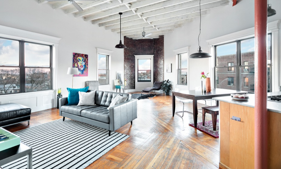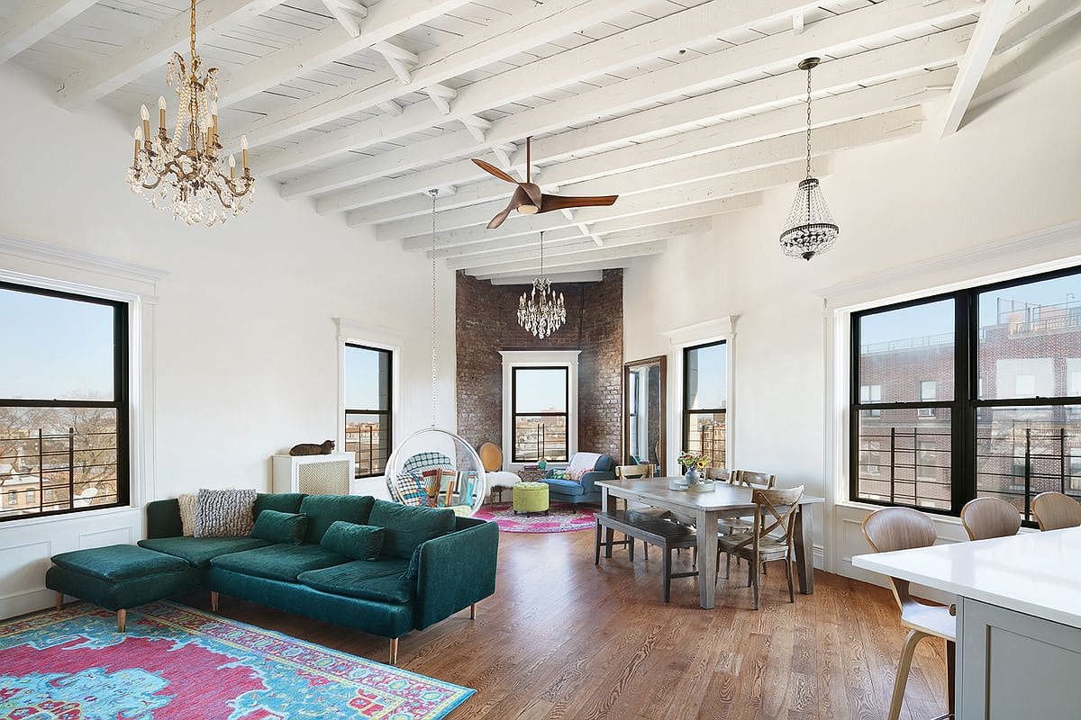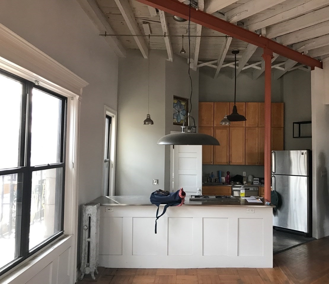 For this pre-war co-op renovation in Brooklyn, Gallery KBNY updated the entire kitchen and both bathrooms, as well as painted and laid out new flooring throughout the entire apartment. The owners wanted to unite the seeming medley of the existing space into a cohesive design more representative of their own style. With its ultra-high ceilings and exposed joints and beams, the space already lent itself to the farmhouse look. The end result of this NYC co-op renovation is a modernized, eclectic farmhouse style that we keenly carried throughout the home.