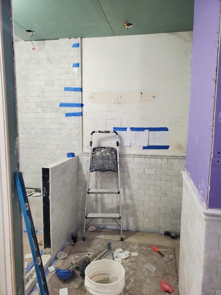The traditional design style carries into the five piece bathroom, which offers basket weave tile on the floors, marble subway on the walls, a freestanding tub, plus a shower. The tub and shower combo can be rare in NYC apartments, but because we combined the apartments, we were able to leverage the old kitchen plumbing for added amenities. The en suite is accessible via an extended walk-through closet and dressing area in the main bedroom. The fact the building was open to wet over dry conditions also allowed us more flexibility when expanding the bathroom space.
