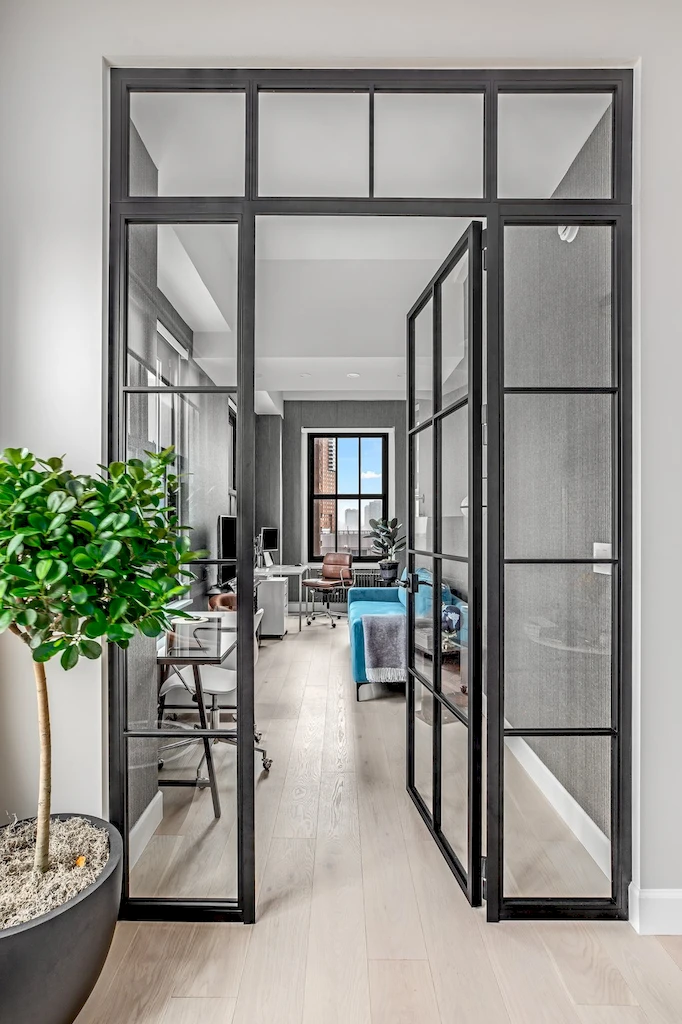 When you’re WFH, your office needs to be both welcoming and motivating. To deliver that delicate balance, we designed a sophisticated space meant to make the most of the lofty surroundings. Rather than completely separating the office from the expansive living area, we introduced iron interior doors, helping to soundproof the secluded room with a sense of style. The study iron door was based on inspiration images provided by the clients, which we then sourced a vendor to custom-build.