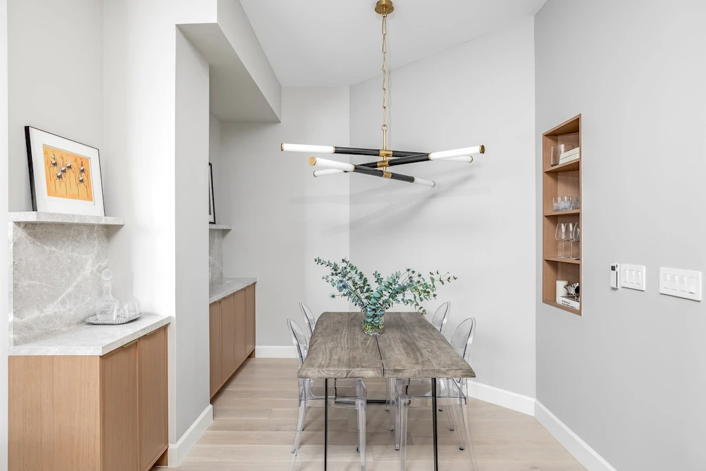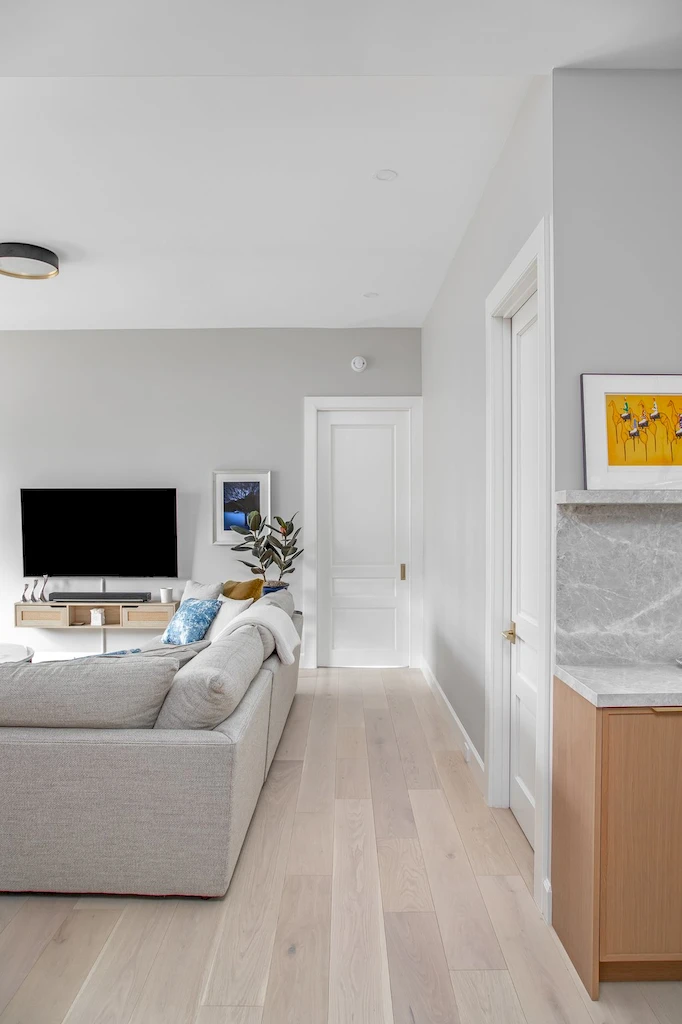 Our full-scale gut renovation redefined the apartment’s flow, replacing the original two-bedroom layout with a more functional three-bedroom design. The updated plan introduced 1.5 additional bathrooms, reconfigured living areas, and incorporated dropped ceilings to enhance lighting and proportion. Every design choice balances modern elegance with original architectural character, creating a refined home fit for any era.