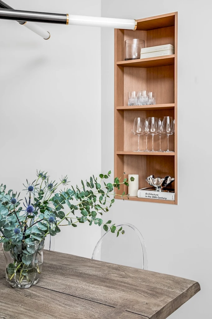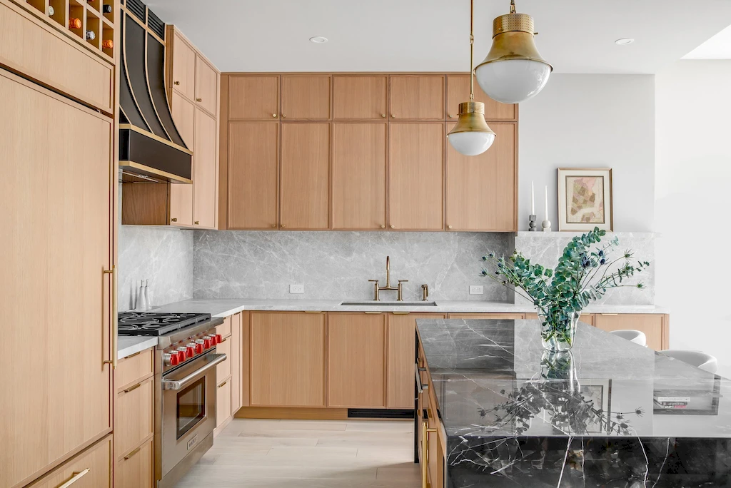 Reimagining this Tribeca loft involved creating a space that balances modern functionality with timeless style. The reconfigured design focused on maximizing usability, especially in the heart of the home: the kitchen and living areas. The thoughtful design embraces modern necessity while incorporating subtle Art Deco influences through brass fixtures, considerate lighting, and architectural accents.