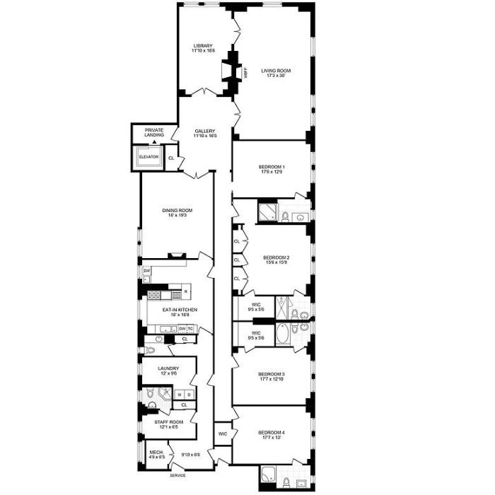 Another significant challenge when renovating this pre-war co-op was creating central air in the space without having to drop ceilings that would impact the period aesthetics, or more importantly block any of the Central Park views. Our solution was a true split HVAC called a VRV system, which we placed in the back laundry room. This required us to turn the space into a formal indoor/outdoor room that allowed the condenser to have circulation of fresh air from outside while still being well-insulated by residing inside. To do this, we removed a window and created an automatic louver that opens and closes accordingly as the VRV system cycles on and off. The room is also equipped with a drainage system so any water managing to trickle inside immediately gets drained. Finally, we ran heat trace lines on all the plumbing pipes so they’ll never freeze, as a secondary measure beyond insulation.