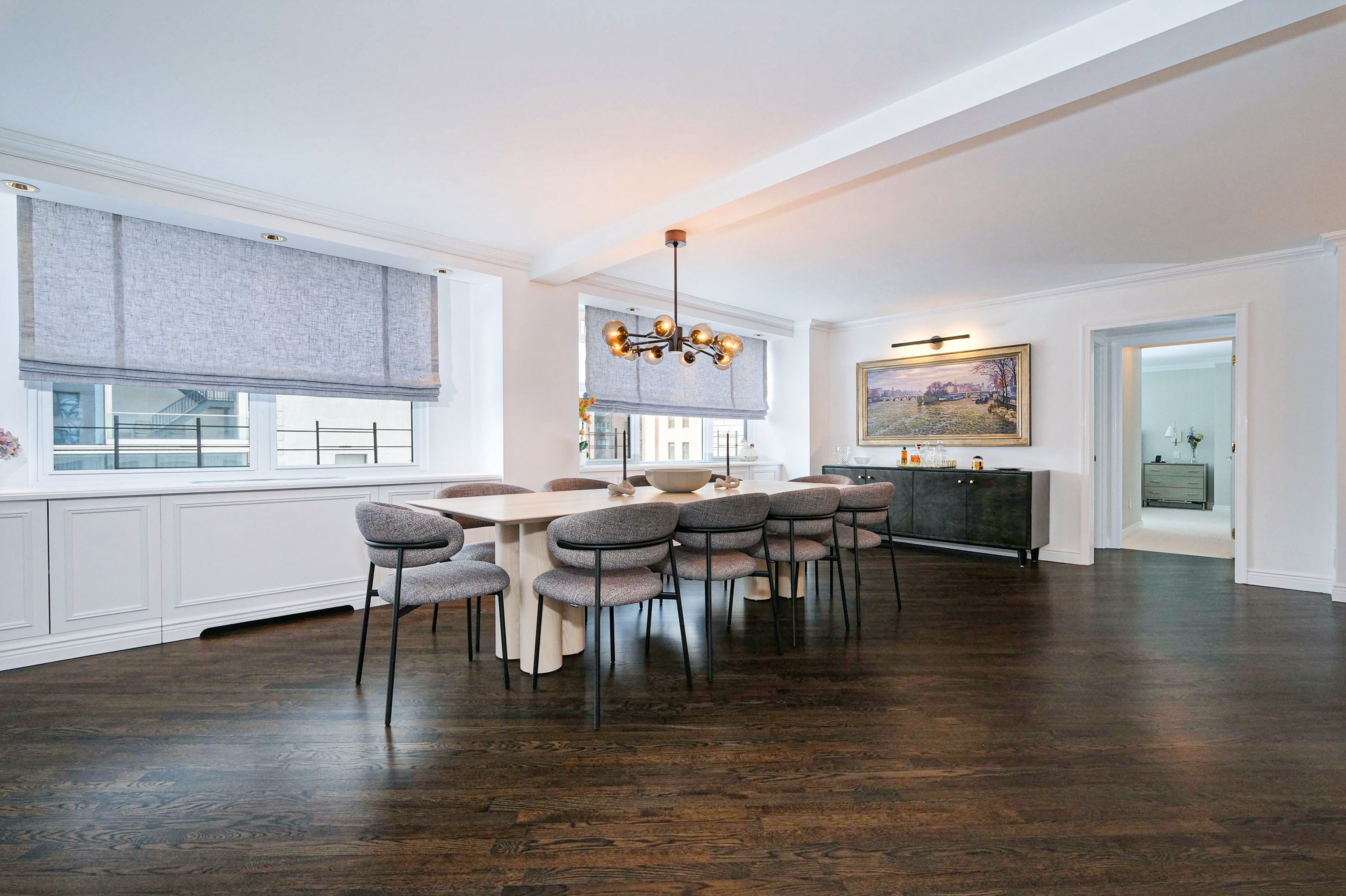 To achieve the client’s dream layout, we had to rework the floor-plan and refresh the entire space. The main adjustment required knocking down the walls in the living room and between the dining room and kitchen. However, removing the wall sprouted another challenge, as there was different flooring in different parts of the space - one of which was noticeably lower. The solution required removing the floors from the smaller side of the space, then weaving in new flooring to match the existing. The result allows for an optimized layout that achieves our client’s desired flow and sets the foundation for the apartment’s transitional design and evergreen NYC appeal.
