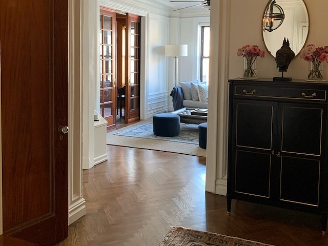 This project was a full home renovation of an Upper West Side classic 8 pre-war apartment, meaning we updated all the flooring, renovated the kitchen, bathrooms, closets, and office space, then painted throughout. The cherry on top: we maintained and enhanced the pre-war charm with restoration and refinishing work throughout the apartment.