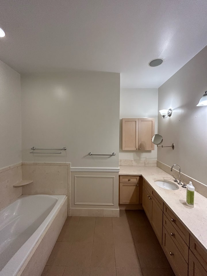We revamped three out of four bathrooms in the project. In the en suite bathroom, we replaced the regular dropping tub with a freestanding one, requiring a four-inch platform for plumbing accommodation, creating a unique visual appeal. The shower in the en suite was also reconfigured for additional space, responding to the client's specific request to enhance their shower experience.