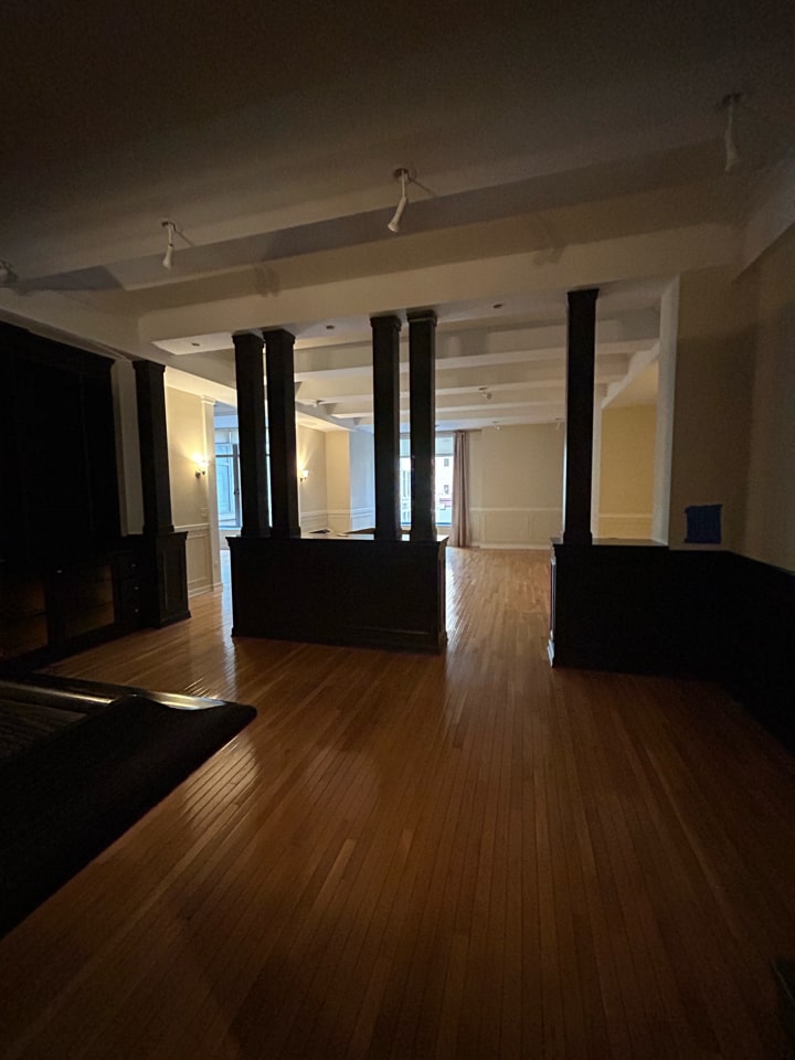 The original layout upon purchase essentially had two kitchens, so we removed a partition that originally divided the two apartments prior to being combined and completely eliminated one kitchen altogether, allowing us to add a spacious living room and create more of an overall open floor plan. We also dropped the ceiling in the main living area to remove exposed beams from the prior ownership and refine the room design.