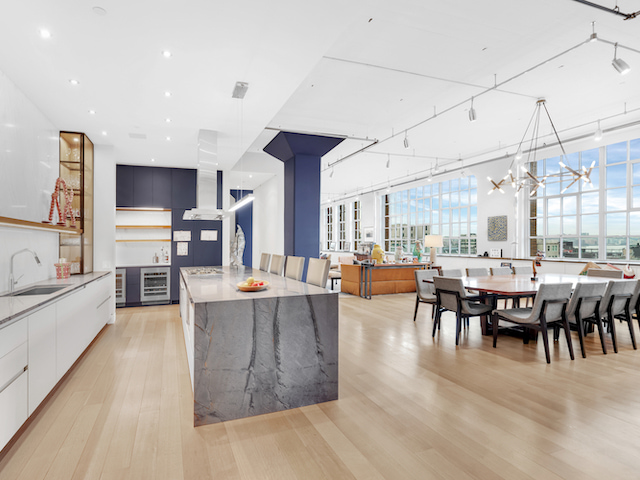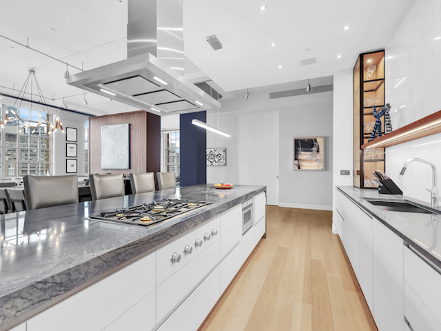 Located in the Sky Lofts building in Tribeca (once home to the most expensive apartment sale in Manhattan), this NYC loft renovation found our clients ready to modernize their centerpiece kitchen. Due to the extravagant nature of many New York City lofts (high ceilings, columns, creative and skillful lighting applications, among other factors), Gallery’s expertise in luxury kitchen designs was vital to our clients.