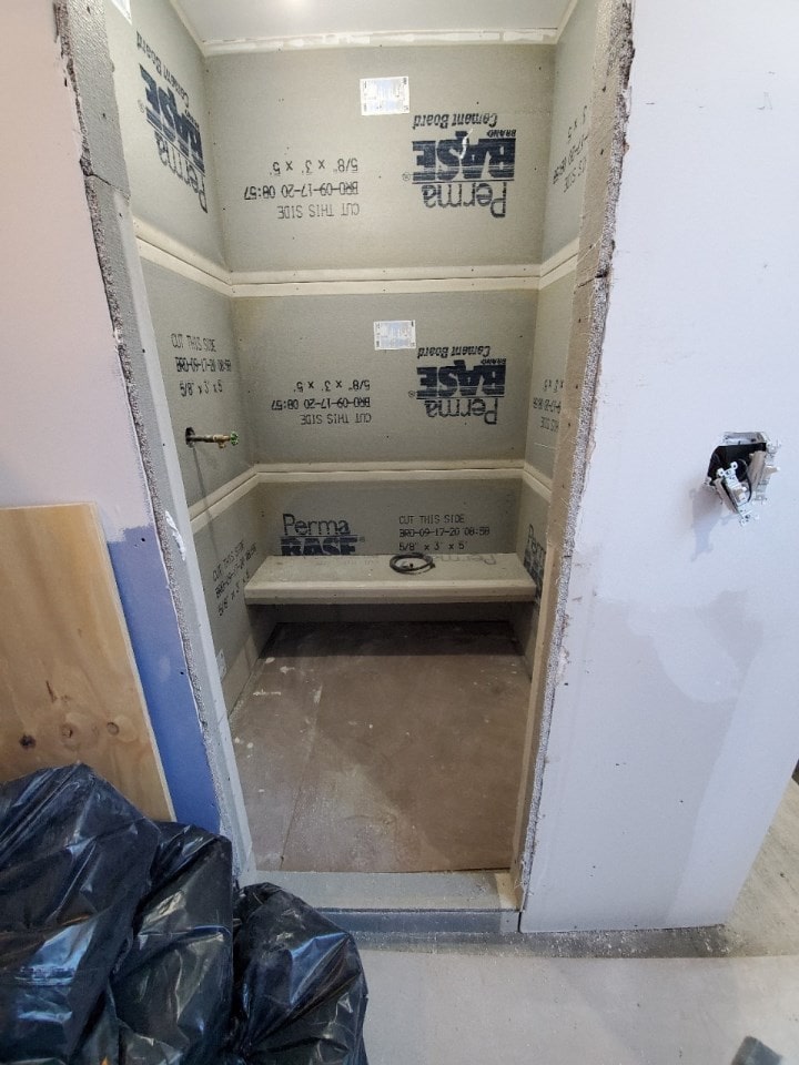 We replaced the condensed, enclosed glass shower in there previously with an expansive walk-in shower, equipped with a built-in bench to relax on after those long days on the clock. Directly next the shower is a separate walk-in water closet (a fun British term for where the toilet goes).