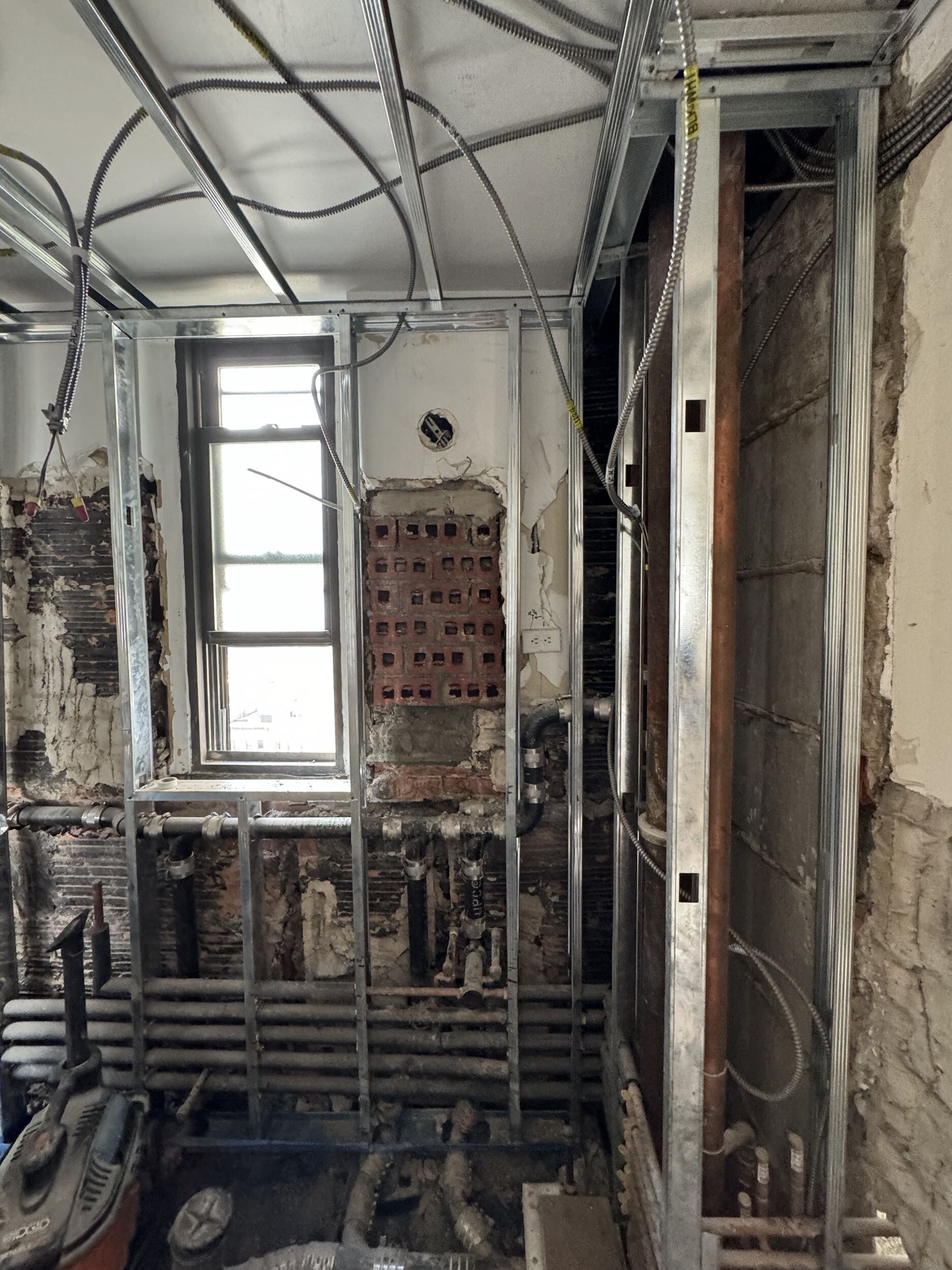 One key perk of enlisting a full-service design-build firm like Gallery is we legitimately handle everything so you don’t have to. This comes especially in handy during projects like this, where midway through construction, the building imposed significant infrastructure upgrades beyond the original scope—including replacement of compromised plumbing risers and buried heating lines, asbestos remediation, and additional fireproofing. These late-stage requirements extended the timeline and added complexity, but Gallery worked directly with the board’s architect, managing agent, and building staff to accommodate their unexpected pivot while minimizing disruption. Whatever it takes.