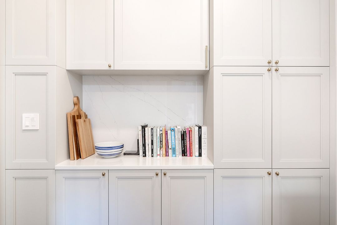 Combine much-needed storage space and contemporary design by implementing modern cabinetry. Walls of frameless or shaker cabinetry will elevate interior aesthetics in a variety of ways and make life much more organized. See various sets of modern cabinetry in our Upper West Side pre-war co-op renovation.