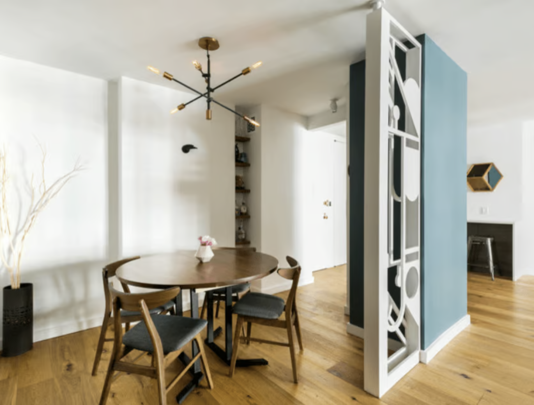 One way to convey contemporary design with a calming nature is Scandinavian design. This Northern European interior design style is known for creating clean and sleek surroundings via decor elements that offer organic textures and curvature, light color palettes, and lots of open space to let the area breathe. See how we took a client’s request and incorporated Scandinavian design into this apartment combination in Columbus Circle.