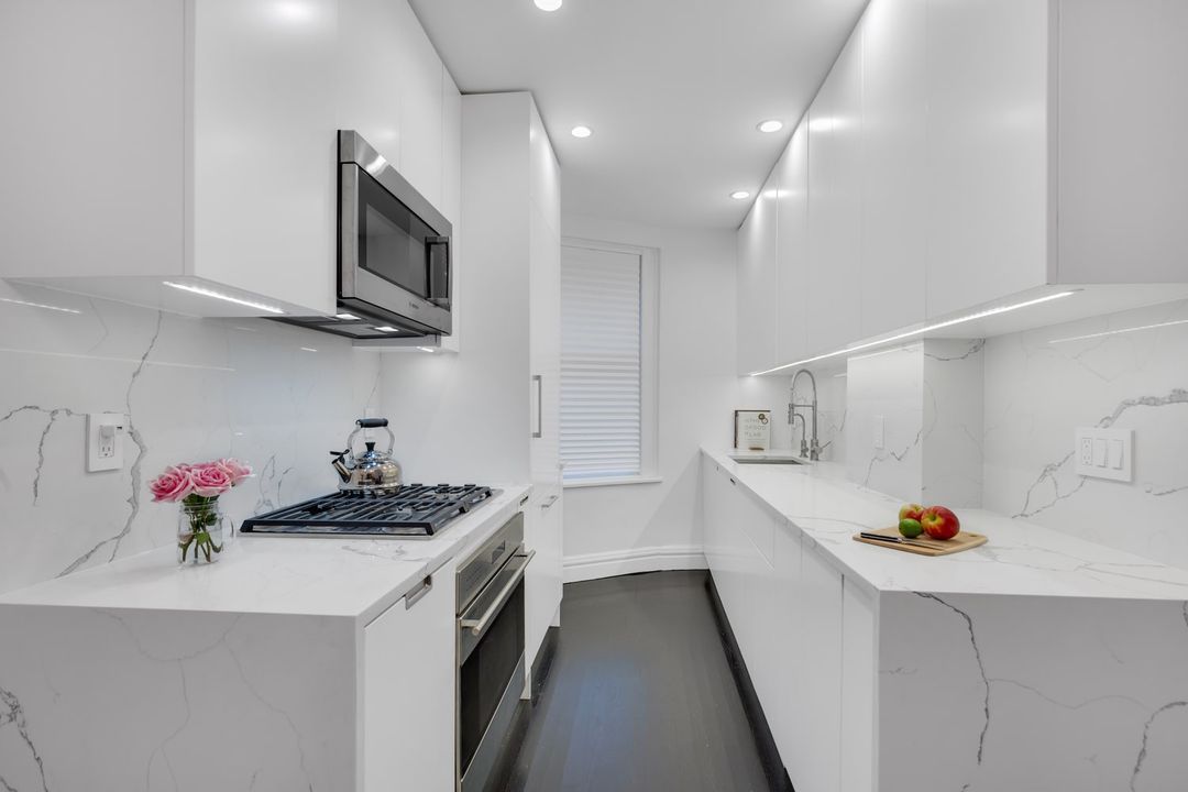 In any NYC gut renovation, the kitchen is usually the most complicated and expensive space to overhaul. For a typical 150–200 square foot kitchen, costs could range $50,000 to $80,000 for mid-range materials and personalized upgrades. This includes semi-custom cabinetry, quartz or stone countertops, and a solid appliance package. High-end kitchens—with full-height slab backsplashes, custom millwork, and integrated appliances—often fall between $90,000 and $150,000, depending on layout changes and complexity. Reworking gas and plumbing lines, common in pre-war buildings, adds further cost and coordination.