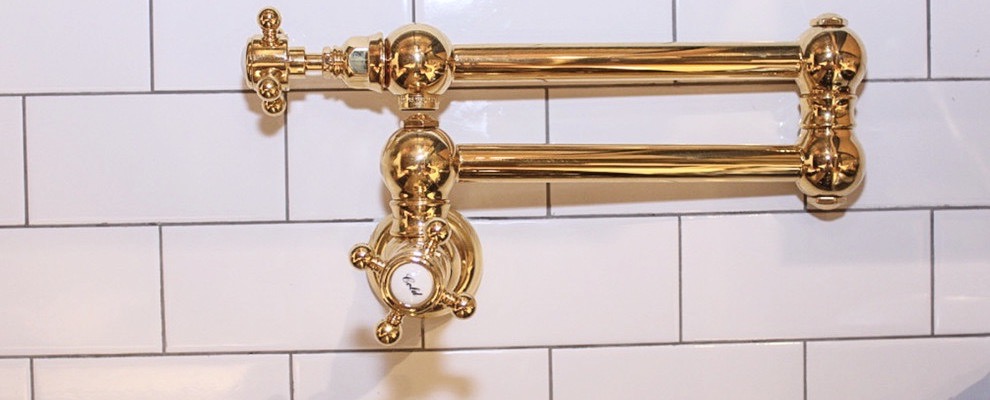 While the farmhouse sink anchors the kitchen’s country side, and stainless steel anchors the urban side, a host of smaller elements sprinkle in qualities of both: subway tiles fold in extra modernity, while polished gold knobs bring to mind antique fixtures.
