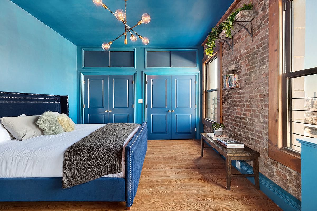 Breaking up the monotony of a bedroom design can be simple as leveraging ceiling space. Adding details to a bedroom ceiling, such as bold painted beams, a coffered ceiling or even a skylight to bring in natural light (not often an option in NYC homes) will add immediate interest to an oft-stared area.