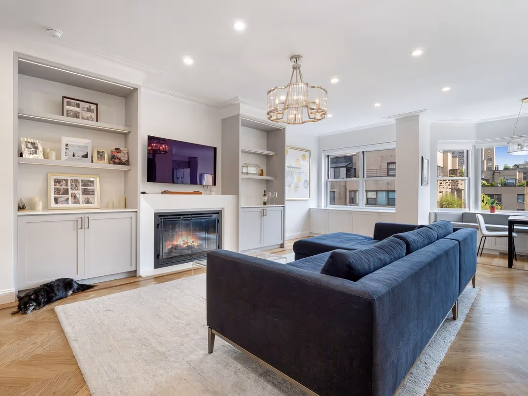 When clients ask for recommendations on living room flooring in a NYC condo, hardwood is almost always our answer. Carpet requires too much upkeep for a main thoroughfare and tiles are relatively uncommon in living rooms. All while hardwood remains a timeless flooring choice that’s more durable than almost all alternatives, whether laid in a traditional chevron or classic herringbone pattern. If your home already has hardwood floors and they simply need some love, always opt to refinish them. Finally, adding an oversized area rug atop hardwood floors offers an unlimited array of complimentary color splash options, plus an added touch of comfort.